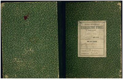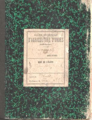 Ecole régionale d'agriculture d'Ondes - Cahier d'élève n°1 - 1925-1928