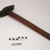 Description : Outil comportant un manche en bois (L : 38,6 cm) de section elliptique (env 3,5 x 2,5 cm) emmanché dans une tête en acier qui, vue de profil, est de forme lenticulaire - avec, panne en travers de chaque côté - mais de largeur constante vue de dessus. L : 14,5 cm, Hauteur maxi (milieu) 3,5 cm, Lg : 4,6 cm.