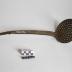 Description : Coupelle légèrement concave percées de trous avec un manche en métal se terminant par un crochet.