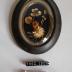 Description : Cadre ovale en bois, verre bombé, fleurs sèches sur fond de velours bleu foncé, un anneau permet de le suspendre.