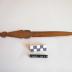 Coupe papier comprenant une lame en bois et un manche plat animé par un cercle, un triangle et deux cercles plus petits formant garde. Le coupe papier est sculpté avec des motifs de rosaces, rouelles, et arêtes de poisson.