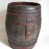 Description : Récipient de bois cerclé, sur plan circulaire, à bords hauts, galbés (formant tonneau).
