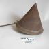Description : Cône percée de multiples petits trous avec une anse sommitale fixe percée à l'extremité pour susprendre le tamis.