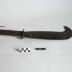 Description : Outil muni d'une lame courbe à son extrémité et la queue est munie d'une garde plate et ovale et d'un manche en bois riveté et d'un arrêtoir fin. L du manche 13,4 cm.