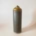 Description : Récipient en tôle sur plan circulaire à bords hauts, droits. Le fond en laiton est brasé, le couvercle en laiton est brasé également, il a la forme d'un cône et se termine par un petit goulot avec un bouchon vissé. Le bouchon est muni d'un anneau métallique.