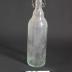 Description : Récipient en verre sur plan circulaire à bords hauts et droits, à goulot galbé à bouchon en porcelaine avec un système de fermeture métallique. Le verre est granuleux en surface.