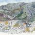 Description : Aquarelle représentant les ruines de l'ancienne église paroissiale secondaire Saint-Jean-Baptiste aux Tourrès.