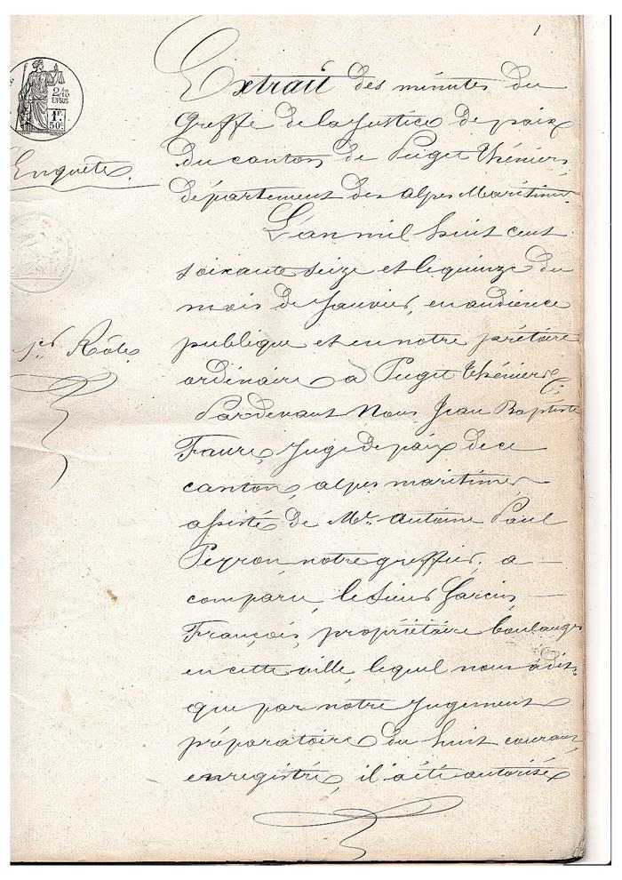 [Extrait des minutes du greffe de la justice de paix du canton de Puget-Théniers
