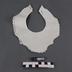 Bavoir fait en deux parties, mousseline sur le dessus, coton dessous. la mousseline est brodée, le bord festonné. Le dessous est en double épaisseur - Encolure 29 cm - Largeur dos 4 cm, devant 9 cm. Tour du bord 60 cm couleur blanc.