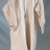 Description : Chemise avec col, une fente sur la poitrine de 38 cm de haut est fermée par trois boutons et boutonnières. Manche longue (L : 41 cm) avec les poignets fermés par un bouton et plissées aux épaules. Sous la fente la poitrine se trouve deux plis plats superposés. Le pli le plus large part du col. Sur les épaules se trouve un empiècement avec près du col un triangle froncé pour donner de l'aisance. Sous les aiselles se trouve un carré d'aisance. Sur le bas les deux pans ne sont pas cousus sur 26 cm.