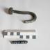 Description : Crochet constitué d'une tige en acier de section circulaire (D : 1 cm) dont une extrémité a été soudée à l'arc à un écrou héxagonal de 2,2 cm. L'autre extrémité a été recourbée pour former un crochet de 2,7 cm d'ouverture intérieure et 3,1 cm de profondeur.