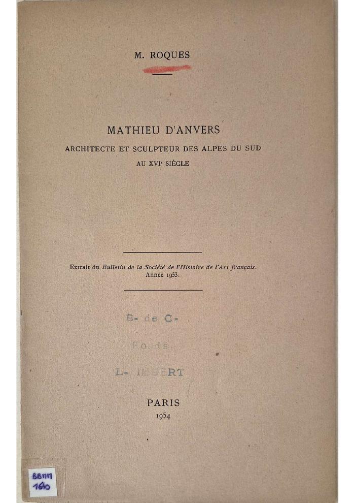Description : Etude de Marguerite Roques sur une statue en bois polychromée (1524) représentant St Jean Baptiste attribuée à Matthieu d'Anvers 1 et qui faisait autrefois partie du retable du maître-autel de la chapelle castrale des Grimaldi. Le nom de Mattieu (ou Matthieu) d'Anvers se retrouve dans une inscription de 1530 sur l'église paroissiale de Colmars-les-Alpes.